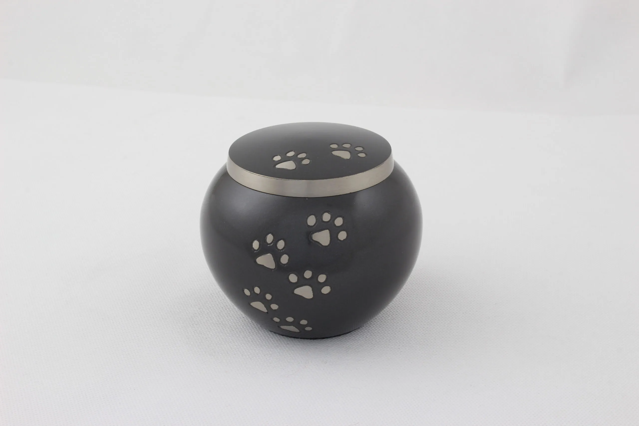 Urna mosiężna UMOS Z270 łączy elegancję i trwałość z symboliką miłości do pupila. Wykonana z mosiądzu, ozdobiona motywem łapek, dostępna w kolorach czarnym, srebrnym i grafitowym.